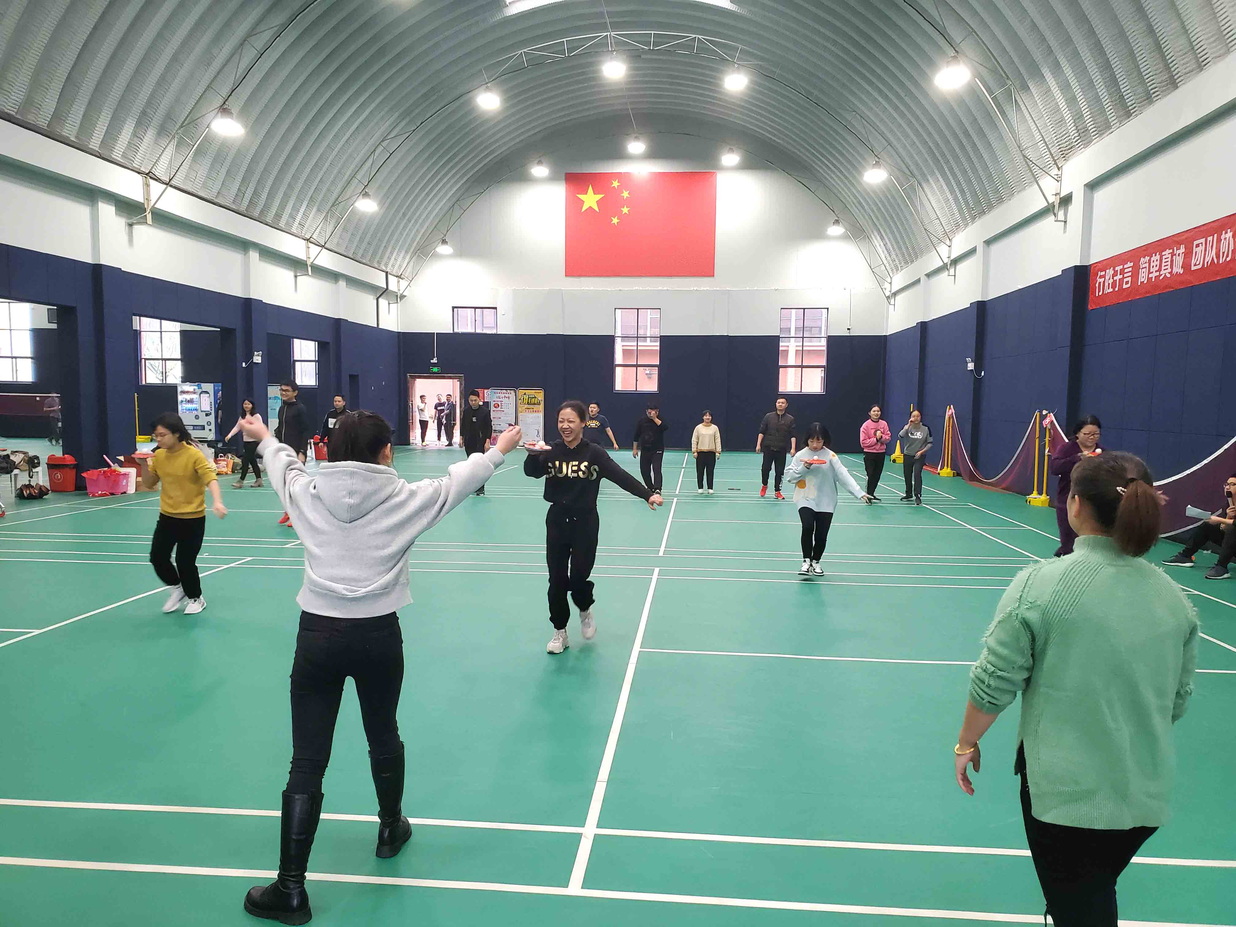 (▲正在进行乒乓球接力比赛)
