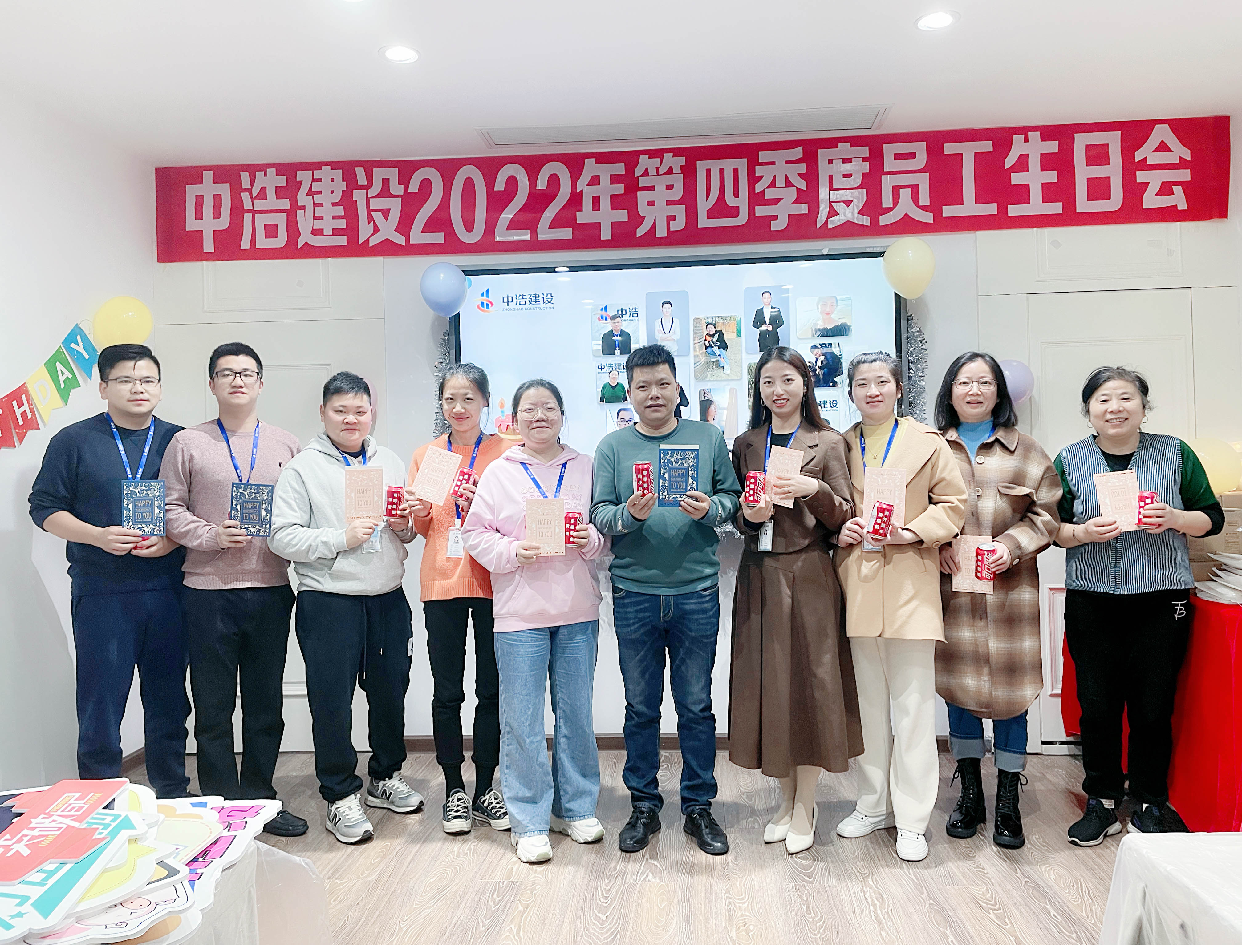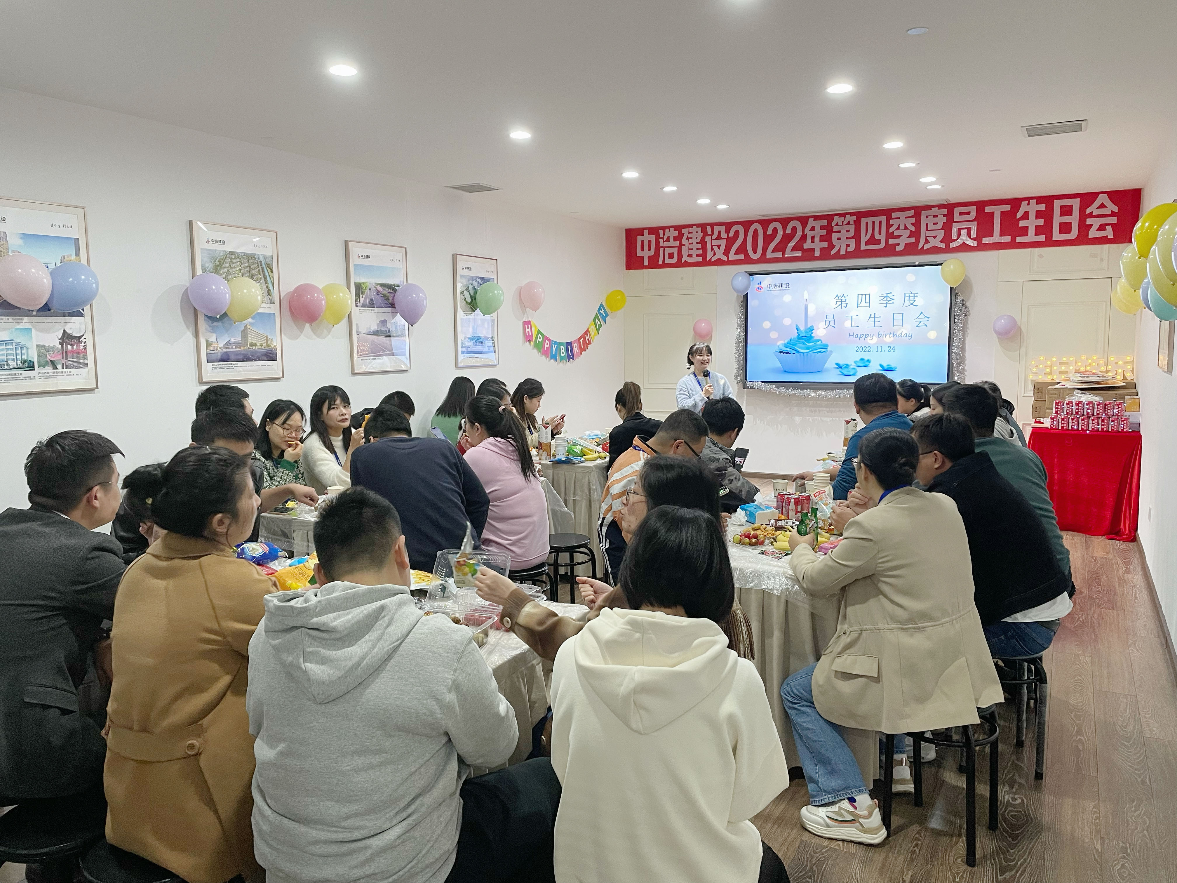 值此感恩节之际,2022年11月24日,中浩建设举办了以“乘势而上 中浩人”为主题的第四季度员工生日会,寿星们及部分员工到场参加活动。