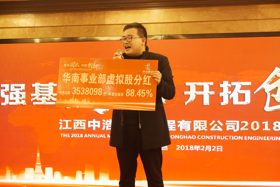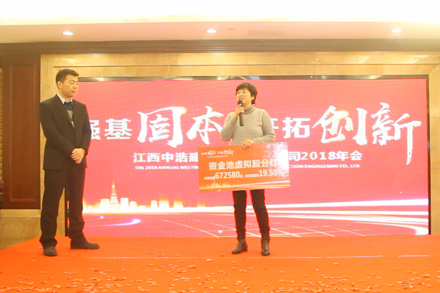 岁月不居,天道酬勤。在热烈的气氛中,公司为各个部门颁发了2017年度年终奖金,还公布了资金池虚拟股、江西事业部虚拟股、华南事业部虚拟股分红的相关情况。