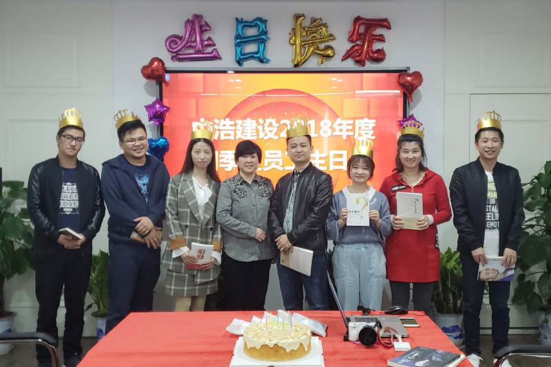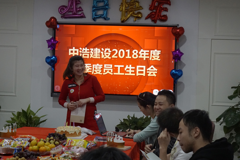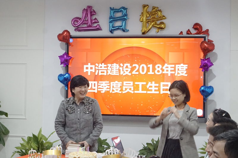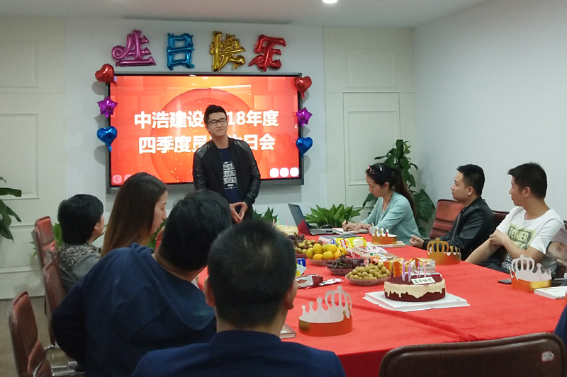 带着对企业和自身的美好祝愿,大家一同观看祝福视频,唱响生日歌曲,分享甜蜜蛋糕,祝福寿星们生日快乐,事业有成,祝福中浩建设一路向前,取得更大发展!