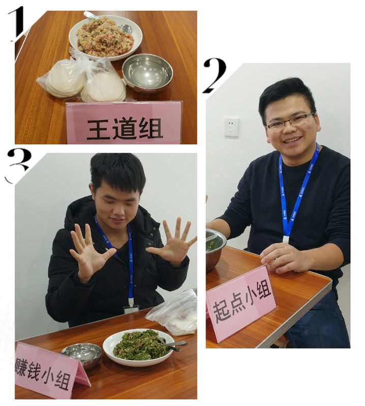 下午3点,大家一起来到员工餐厅,以品牌分小组为单位进行包饺子比赛。白菜肉馅儿、芹菜肉馅儿、韭菜肉馅儿……各种美味的肉馅儿挑动着大家的味蕾。