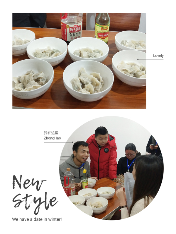 为活跃公司文化生活,增进同事间友谊,让大家过一个温馨快乐的节日,12月21日,公司行政部安排厨房早早做好了准备,一起迎冬至,包饺子,吃饺子。