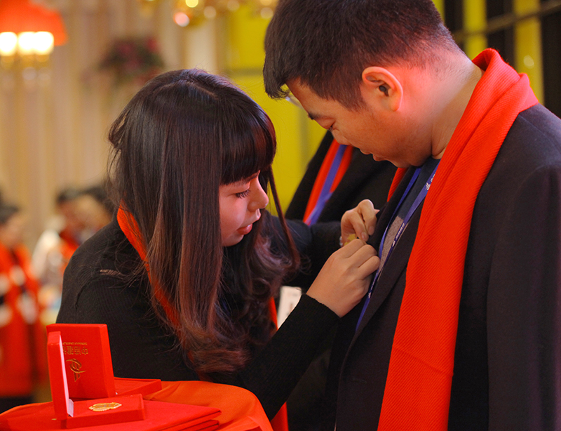 胡总(右)为公司三级合伙人授勋并合影