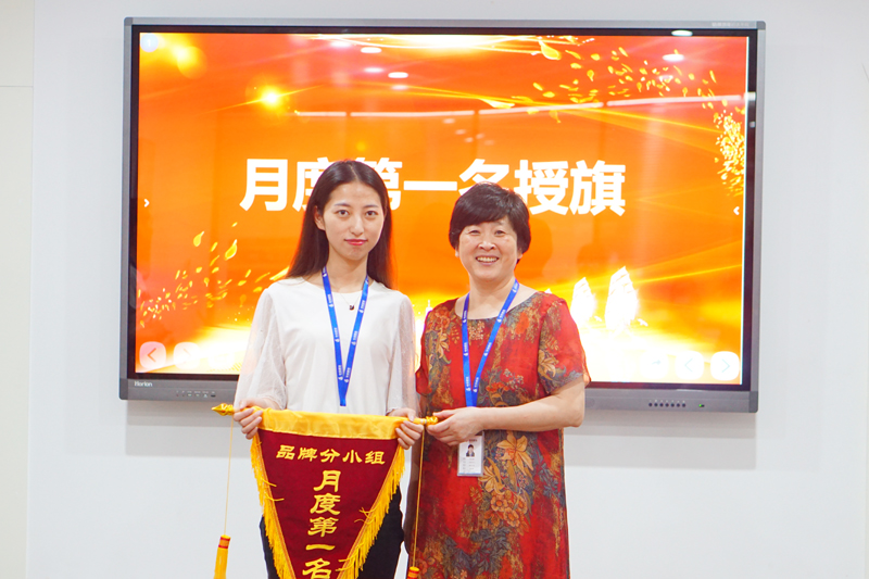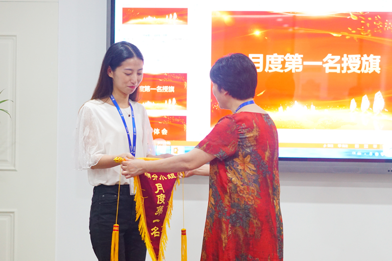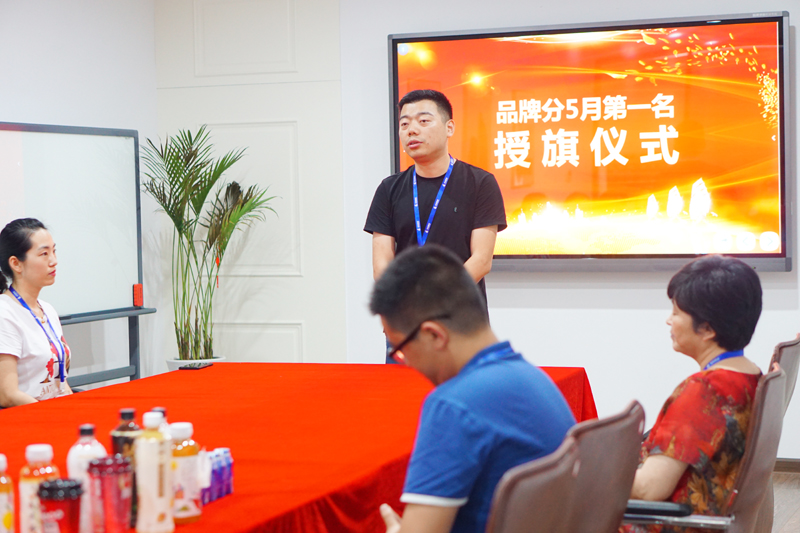据悉,经过将5月的业绩贡献和文化贡献汇总,真诚组以总分27.5分、人均4.58分的成绩从所有品牌分小组中脱颖而出,并最终摘得5月桂冠。活动中,胡总将“品牌分月度第一名”的锦旗授予真诚组。