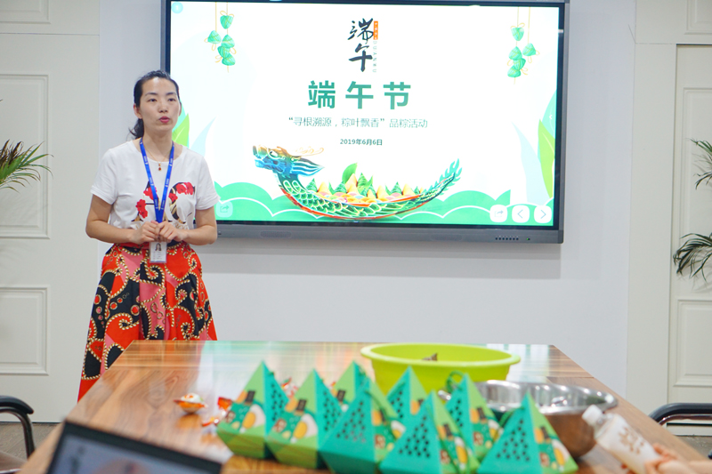 主题活动上,品牌文化部负责人蒋孝玉向同事们详细介绍了端午节的由来、风俗、活动,以及与端午有关的诗词、端午文化的演化等。