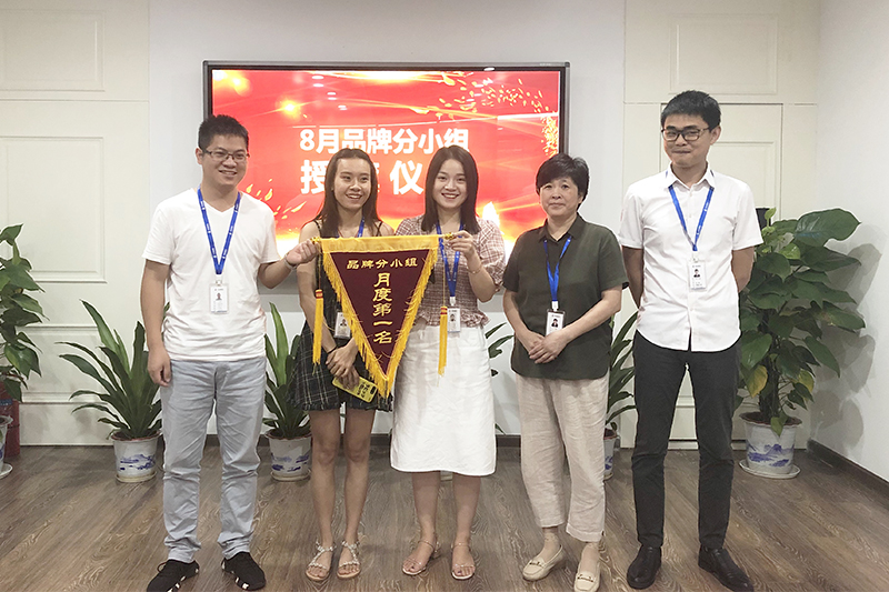7月,下半年工作开启的第一个月份。经过激烈角逐,正道组以月度总分22分、月度人均3.07分的好成绩荣获7月第一名。在授旗仪式上,执行总监胡总对正道组表示祝贺,并将品牌分小组月度第一名的锦旗授予正道组。