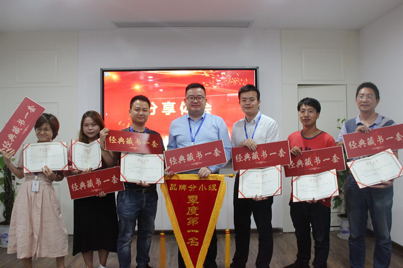 接下来,执行总监胡训菊授予大业组季度品牌分第一名锦旗。同时,大业主每位成员都将获得季度奖励经典藏书一套。