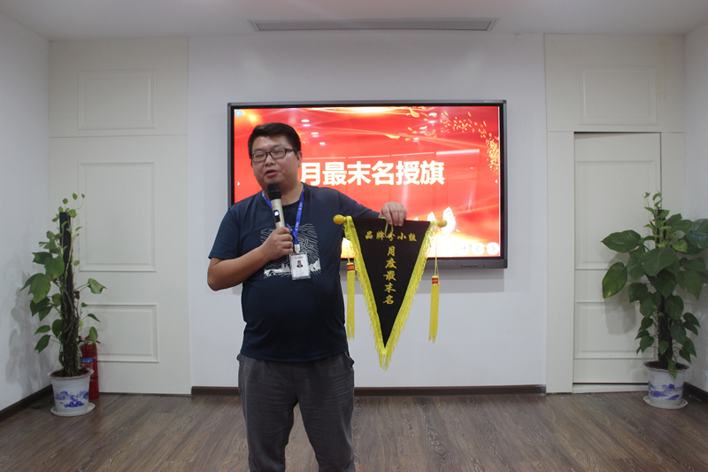 在近期的品牌分评比中,新增了月度最末名的评比。本月战略组垫底,专属黑旗由行动组李小球代为认领。“分数排名最末,这属于意识问题。小组各成员并未高度重视品牌分,容易加分的项目也没有尽力得到,今后需要加以重视。”