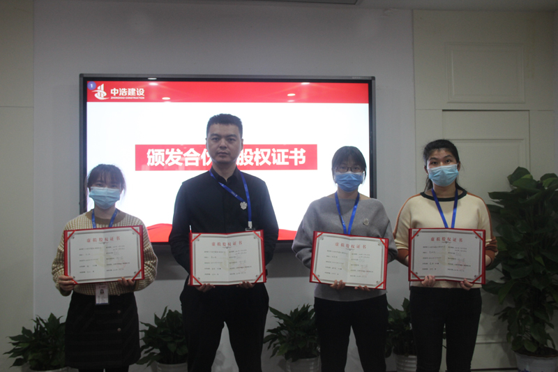 “我宣誓:我是中浩合伙人,遵守合伙人章程,履行合伙人职责,执行合伙人决定,严守合伙人纪律,忠于中浩、忠于中浩人,恪尽职守、廉洁奉公,接受全体员工的监督,为把中浩建设成为员工自豪、客户放心的行业领先企业而努力奋斗!”在现场,22位合伙人进行了庄严的宣誓。随后,大会还向合伙人颁发了股权证书及合伙人勋章。