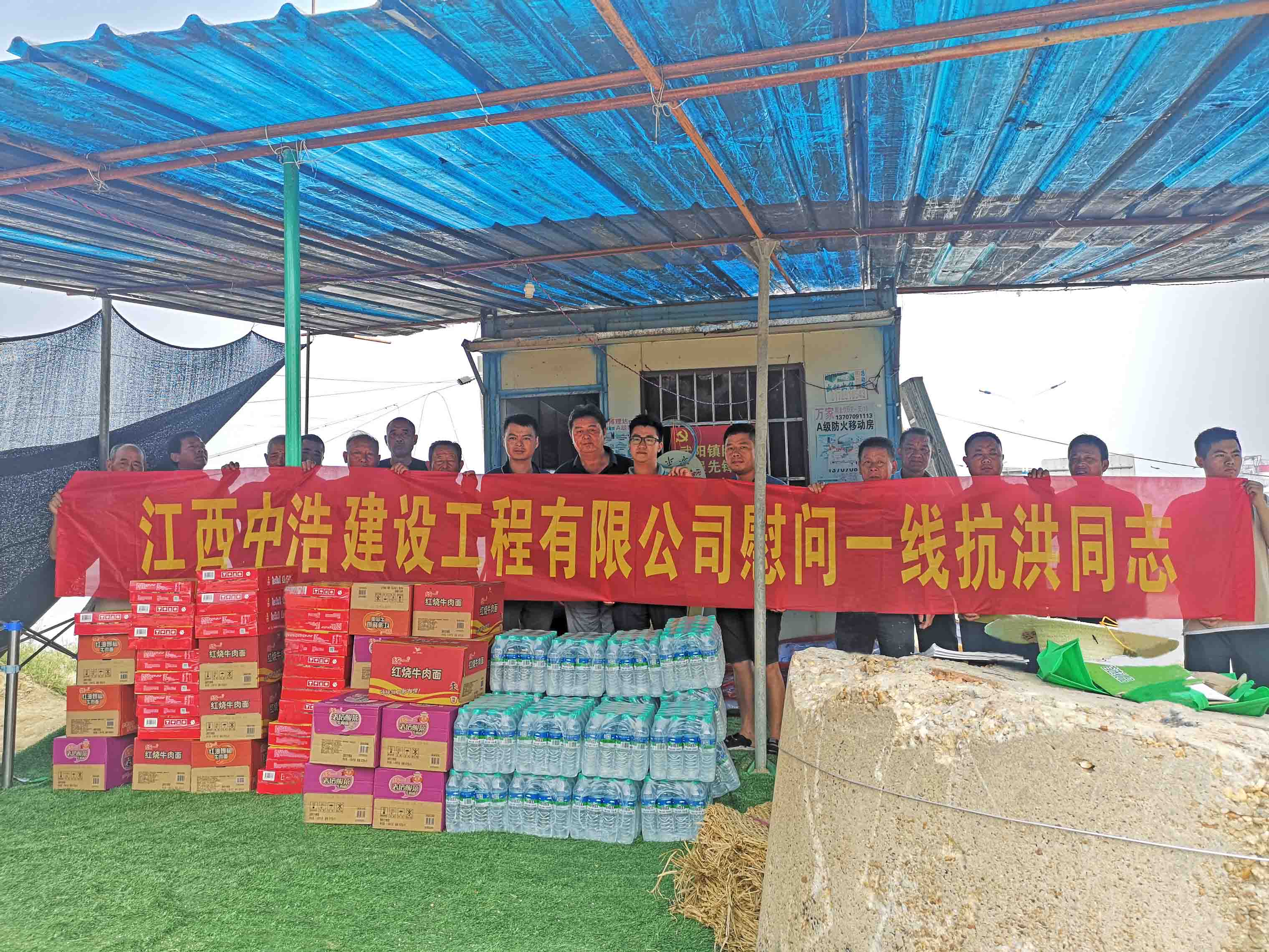 7月15日,中浩建设慰问团队前往南昌县武阳镇慰问防汛一线值守人员,并为他们送去矿泉水、方便面、红牛等生活物资,以表达对抗洪抢险一线人员的敬意和关爱。