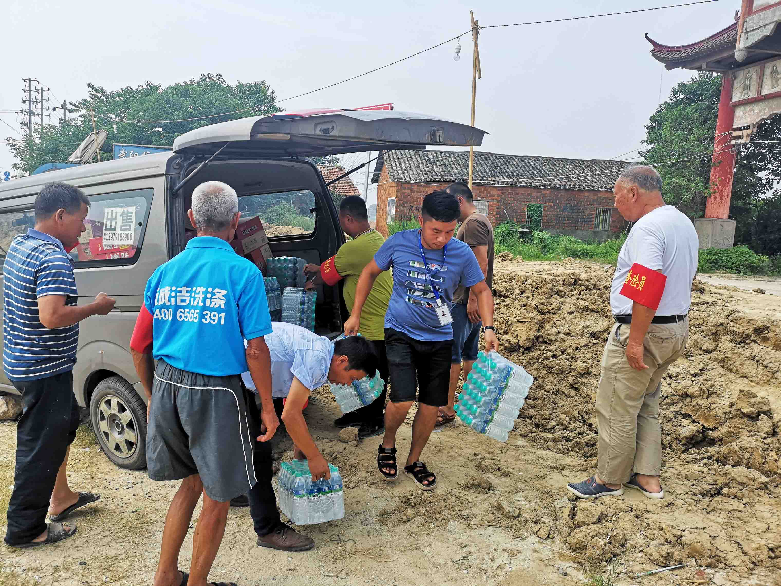 (▲中浩建设慰问团队正在搬运防汛物资)