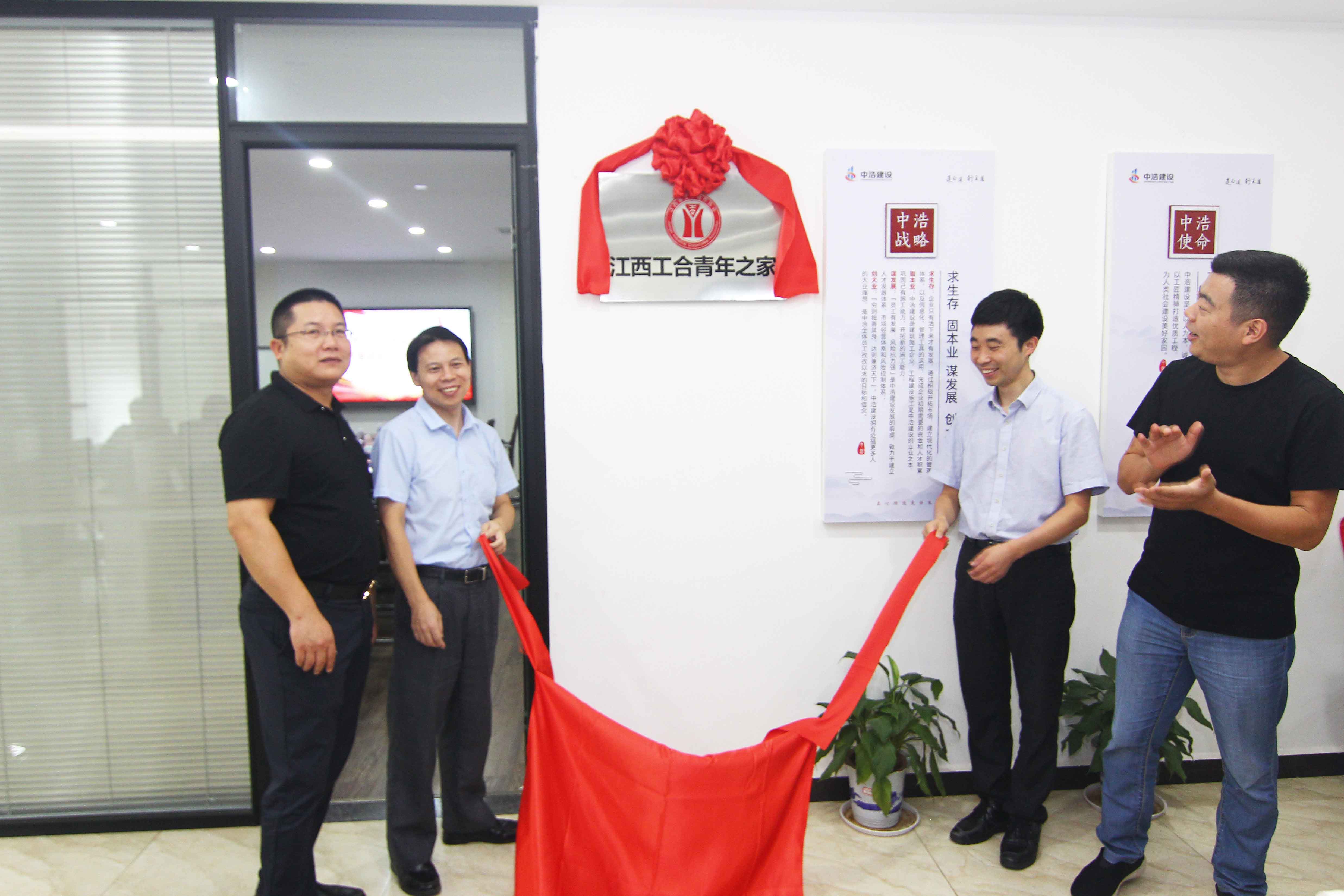 当天活动中,袁辉斌秘书长,黄水强董事长,江西工合理事、江西同致房地产土地资产评估咨询有限公司总经理龚良智,江西工合理事、江西中恒文化创意有限公司总经理谯锋共同为“青年之家”揭牌。