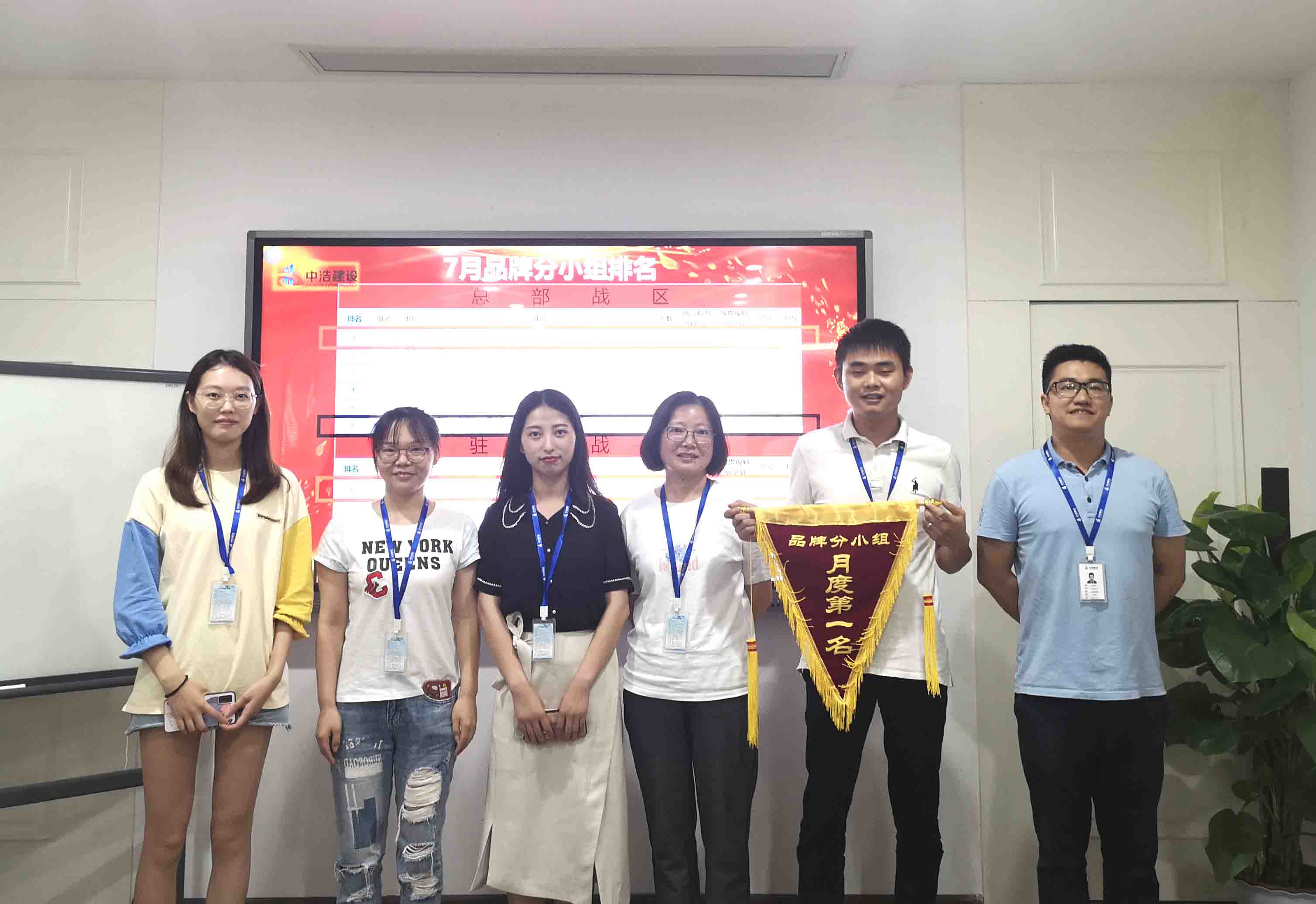 8月10日17时许,伴随着热烈的欢呼声和掌声,中浩建设7月份品牌分小组授旗仪式正式落下帷幕。经过数月的沉淀,王道组凭借总分47.7分,人均7.95分的绝对优势成功逆袭,荣获冠军。