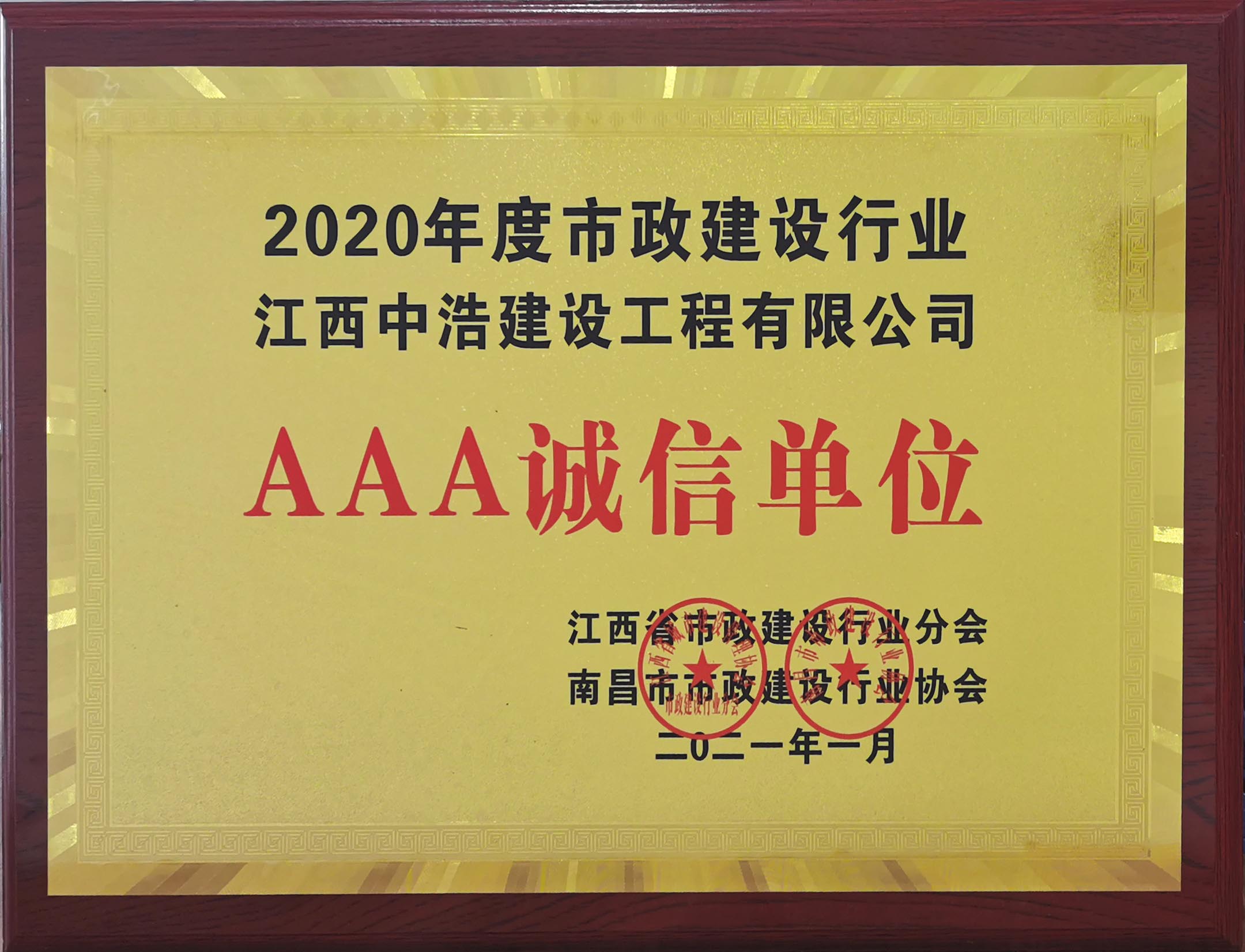 日前,从江西省市政建设行业分会、南昌市市政建设行业协会传来喜讯,中浩建设从多家建筑企业中脱颖而出,被评为“2020年度市政建设行业先进单位”和“2020年度市政建设行业AAA诚信单位”。