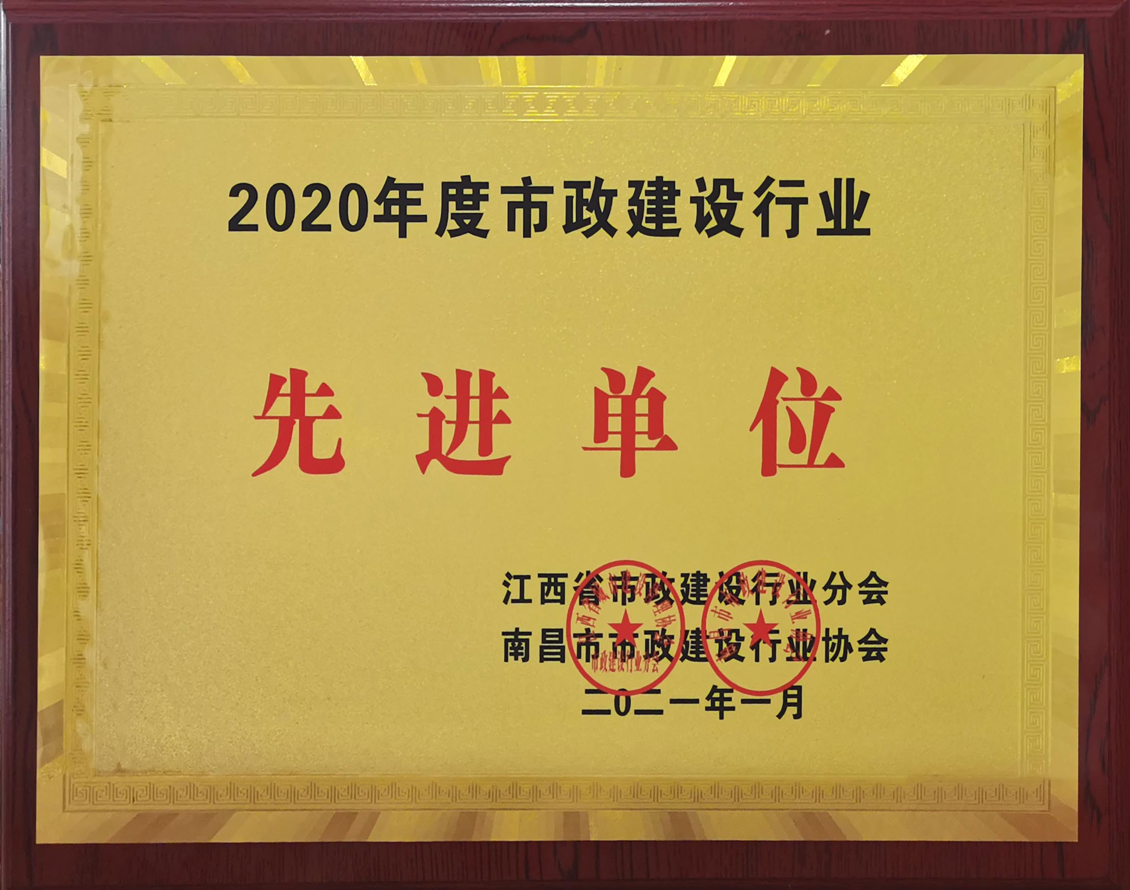 (▲2020年度市政建设行业先进单位奖牌)