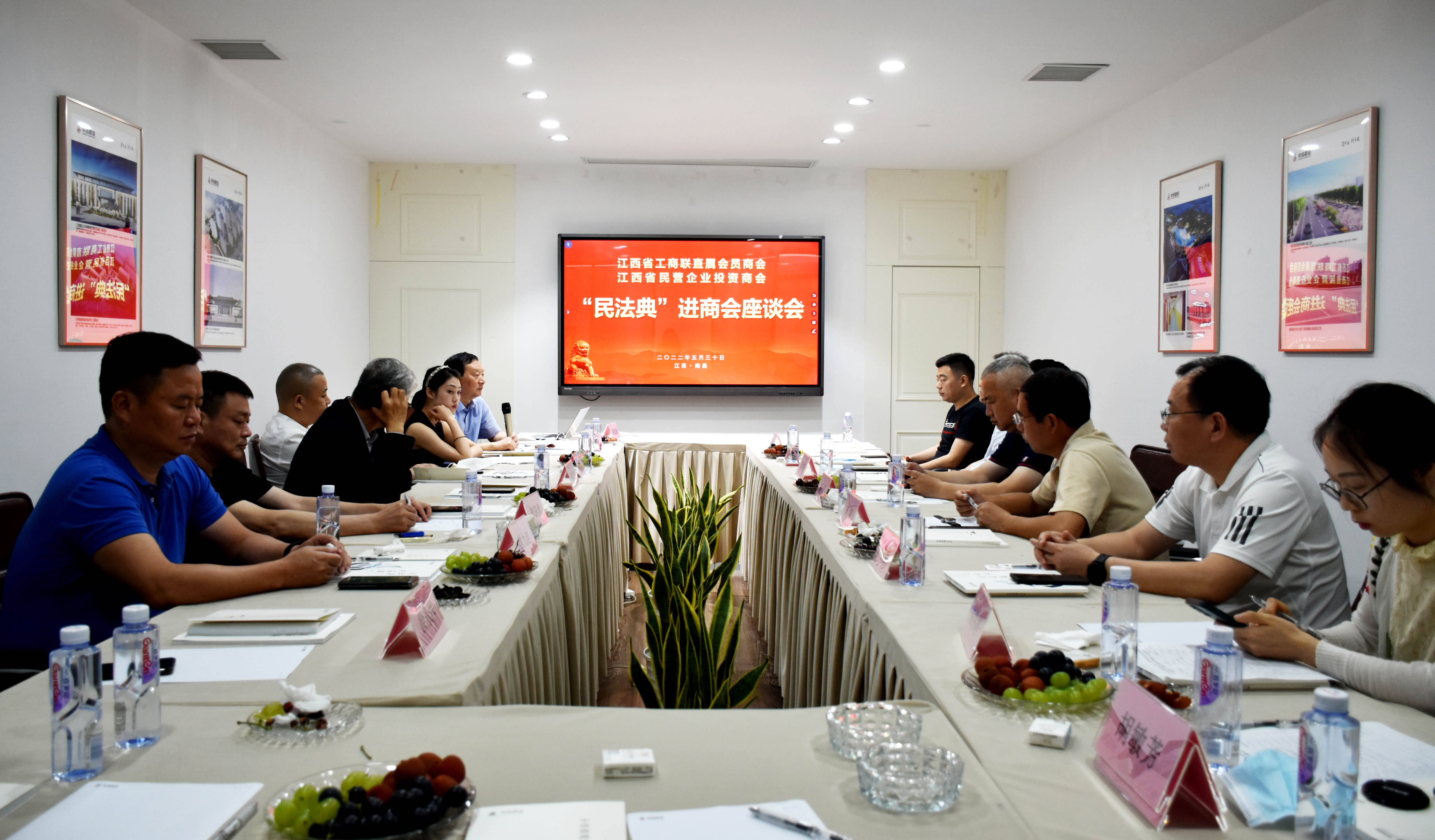 为深入学习贯彻习近平法治思想,切实加强民法典学习宣传教育,推动民法典学习宣传走进商会、深入民企,2022年5月30日,江西省工商联直属会员商会、江西省民营企业投资商会走进中浩建设举办“民法典”进商会座谈会。会长郭坚华,执行会长熊绍平,监事长李国勇,副会长熊九连、黄平、李宇、唐捷、彭易奎、涂建新,法律服务中心主任梁成意,中浩建设董事长、常务理事黄水强及秘书处工作人员出席座谈会,会议由执行秘书长胡显煋主持。