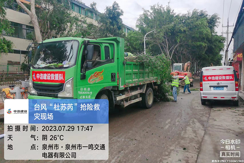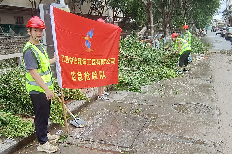 受第5号台风“杜苏芮”影响,福建省泉州市惠安县遭遇强台风及强降雨天气,多地出现路面积水、树木倒伏、交通中断等情况,给市民出行和生活带来极大不便。7月29日,江西中浩建设工程有限公司惠安县崇山污水处理厂中水回用项目部(以下简称“中浩惠安污水处理厂项目部”)第一时间响应号召,主动作为,组建应急抢险队奔赴灾害现场,全力以赴支援受灾地区抢险工作。