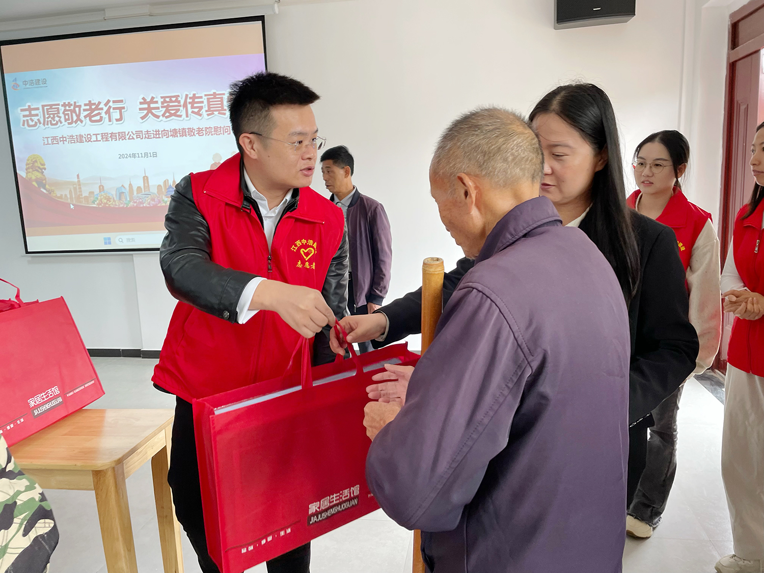 11月1日上午,阳光收敛,天气阴沉,深秋的风带着一丝寒意。江西中浩建设工程有限公司的志愿者们在公司运营保障中心总监柴晨光的带领下,从南昌市红谷滩中心区驱车40多公里前往南昌县向塘镇敬老院,看望慰问老人们的日常生活,为他们带去中浩人的关怀和暖意。