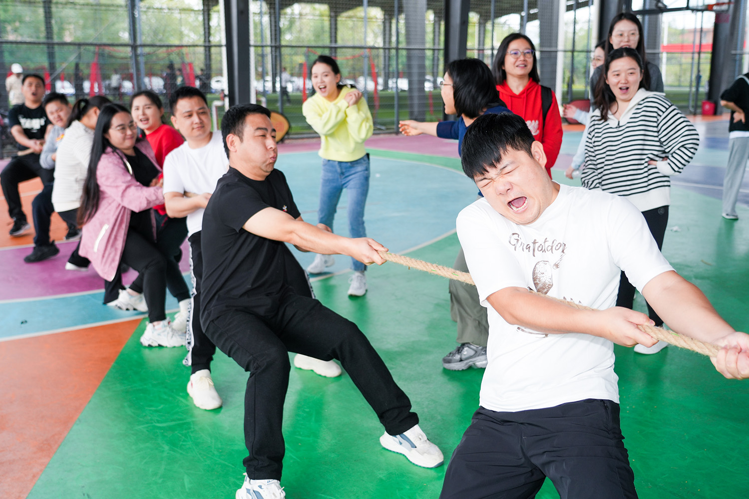 在11月16日,本届运动会的户外项目在雷公坳体育产业园拉开帷幕。户外项目以团体项目为主,内容丰富多彩,着重展示小组成员间的配合,突出了趣味性与合作性,共设置了4×50米接力、托球接力、滚铁环接力、丢沙包、定点投篮、拔河等团体比赛。活动现场,参赛选手聚精会神、通力合作、默契十足,现场呐喊声、加油声、欢笑声不绝于耳,将比赛气氛推向一个又一个高潮。最终,本届运动会有18人获得个人积分一、二、三等奖,3个品牌分小组获得团体积分一、二、三等奖。