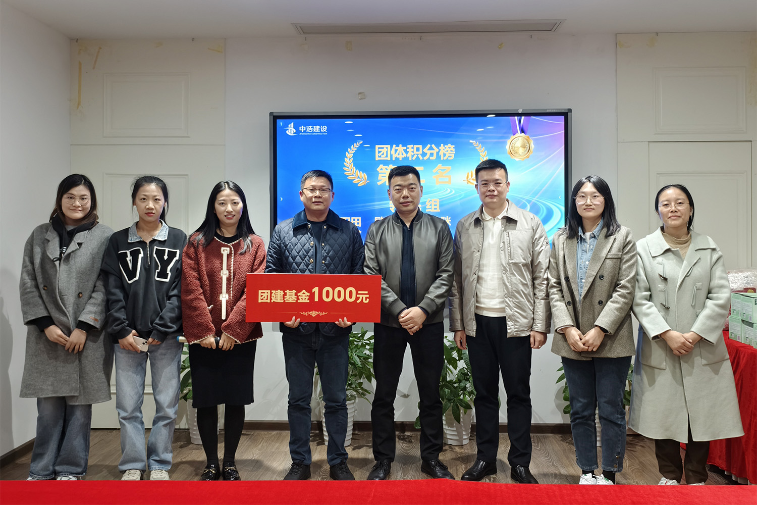 ▲洪总(中)与个人积分二等奖获得者合影