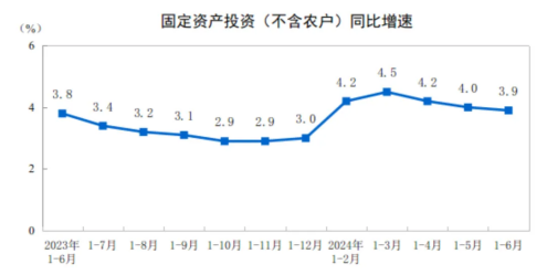 2024年1—6月份,全国固定资产投资(不含农户)245391亿元,同比增长3.9%。其中,民间固定资产投资127278亿元,同比增长0.1%。从环比看,6月份固定资产投资(不含农户)增长0.21%。